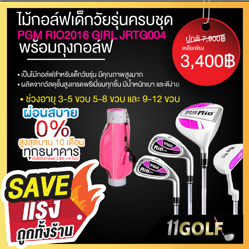 รหัสสินค้า JRTG004-B ไม้กอล์ฟพรีเมี่ยม!!! ราคาถูกที่สุดในประเทศไทย!!! ไม้กอล์ฟเด็กครบชุด PGM RIO20